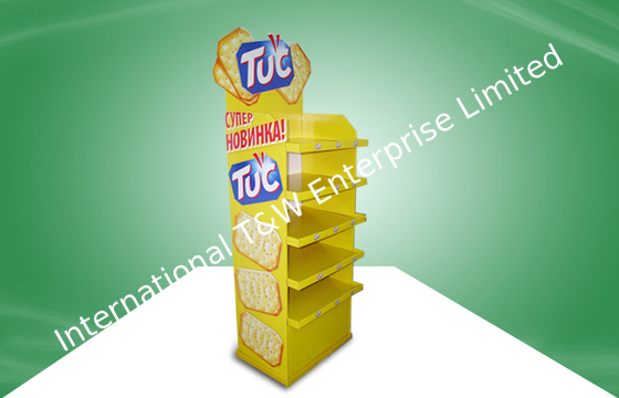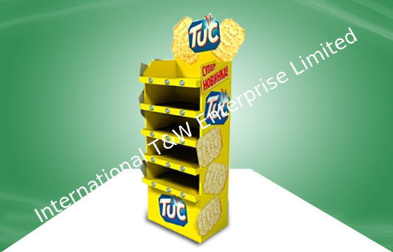 Yellow CMYK Offset Printing POS Cardboard Display Stands With Five Shelf For Food