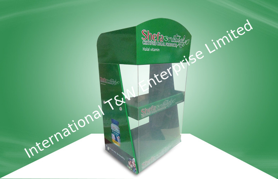 Healthcare Vitamin Cardboard Counter Display With PET Cover To Avoid Thieves